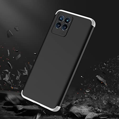 GOGME Cover per Realme 8i Cover, Custodia Protettiva con Tutto Il Corpo Tocco Morbido Setoso, Staccabile Silicone PC Duro Doppio Strato Antiurto Protettivo Custodia, Argento/Nero