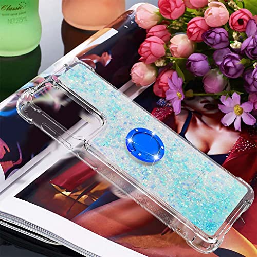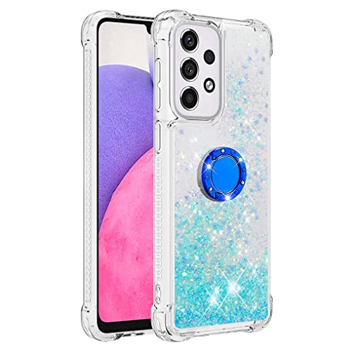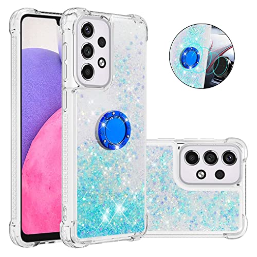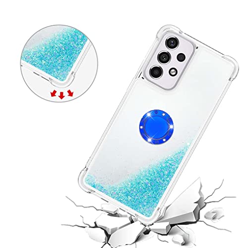 GOGME Cover per Samsung Galaxy A33 5G Cover, [con 360° Anello Supporto] Custodia in Liquido Quicksand con Brillantini, Case in TPU Antiurto Ultra Sottile in Silicone Morbido, Azzurro