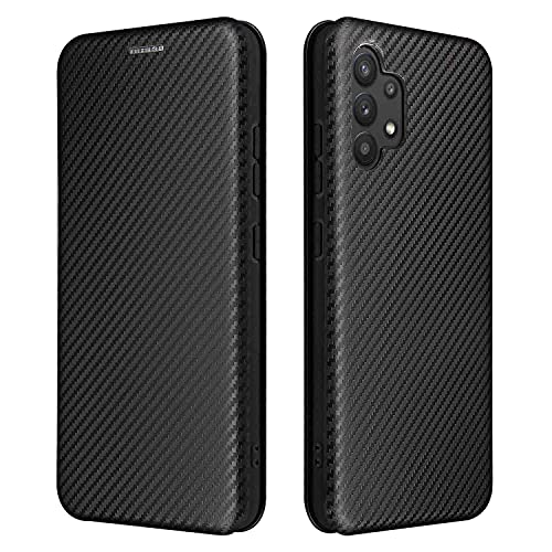 GOGME Cover per Samsung Galaxy A32 4G (6.4") Cover Magnetica Portafoglio, Custodia in Robusto Pannello PC in Fibra di Carbonio + Antiurto TPU + Anello Kickstand con [Slot per schede]. Nero