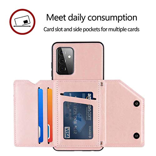 GOGME Cover per Samsung Galaxy A72 5G Portafoglio, Custodia Flip per Samsung Galaxy A72 5G con Fessura per Carta di Credito, Custodia Antiurto in Pelle Elegante e Sottile, Oro Rosa