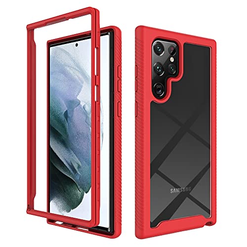 GOGME Cover per Samsung Galaxy S22 Ultra 5G Cover, Hybrid Cornice in TPU + Rugged PC [Doppio Strato] 2 in1 Protective Case, Trasparente Back Cover Custodia Bumper. Rosso