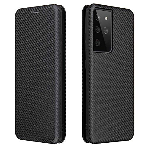 GOGME Cover per Samsung Galaxy S21 Ultra 5G Cover Magnetica Portafoglio, Custodia in Robusto Pannello PC in Fibra di Carbonio + Antiurto TPU + Anello Kickstand con [Slot per schede]. Nero