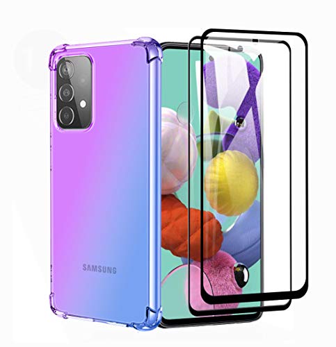 GOGME Cover per Samsung Galaxy A72 (4G / 5G) + 2 Vetro Temperato, Custodia in Gradiente Color Case Cover, [Angoli rinforzati] Custodia protettiva trasparente antiurto morbida TPU Silicone Bumper