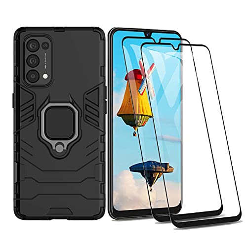GOGME Cover per Oppo Find X3 Neo + 2 Vetro Temperato, Armor Custodia con 360 Gradi Girevole Anello e Supporto Magnetico Auto, Silicone TPU e PC Doppio Strato Protettiva Bumper. Nero