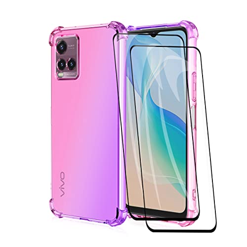 GOGME Cover per Vivo Y21 / Y21s / Y33s + 2 Vetro Temperato, Custodia in Trasparente TPU, [Rinforzare la con Angoli] Custodia Silicone Morbida Ultra Sottile Case (Rosa/Viola)