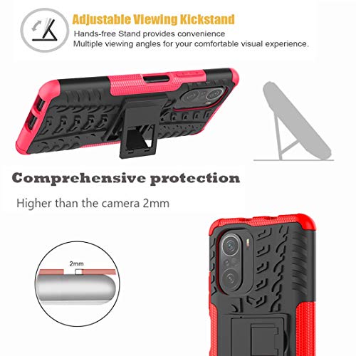GOGME Cover per Xiaomi Poco F3 / Mi 11i 5G, Custodia Protettiva con Supporto, Robusto Pannello Posteriore PC AntiGraffio + Antiurto TPU Dual Layer Armour Ibrida Case. Rosso
