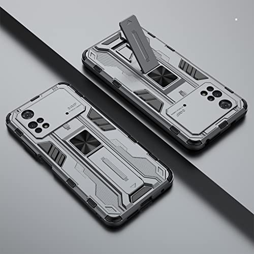 GOGME Cover per Xiaomi Poco M4 PRO 4G Custodia, Custodia Protettiva in PC Ultra Sottile con Staffa, Sensazione di qualità + Silicone Antiurti Cellulare Custodia, Grigio