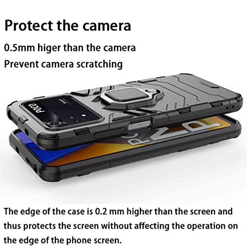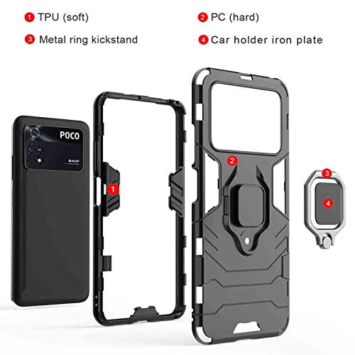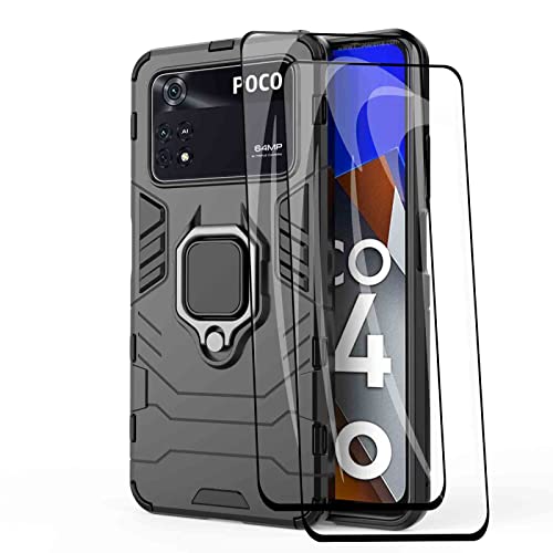 GOGME Cover per Xiaomi Poco M4 PRO 4G (Not for 5G Edition) + 2 Vetro Temperato, Armor Custodia con 360 Gradi Girevole Anello, Silicone TPU e PC AntiGraffio Protettiva Bumper Case. Nero