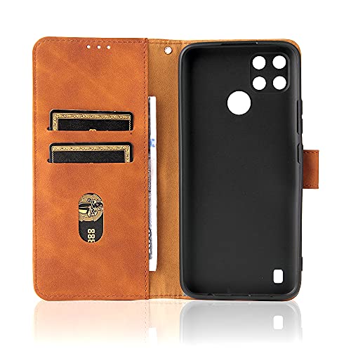 GOGME Leather Folio Cover per Realme C21Y (C21-Y) / Realme C25Y Cover, PU + TPU Leather Wallet Case, Premium Filp Cover Custodia in Pelle Portafoglio con Funzione Stand, Marrone