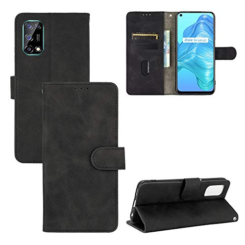 GOGME Leather Folio Cover per Realme 7 5G (Not for Realme 7 4G) Cover, PU + TPU Leather Wallet Case, Premium Filp Cover Custodia in Pelle Portafoglio con Funzione Stand, Nero