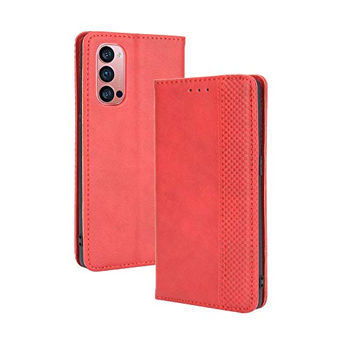GOGME Leather Folio Cover per Oppo Reno 4 PRO 5G (Reno4 PRO 5G) Cover, PU + TPU Leather Wallet Case, Premium Filp Cover Custodia in Pelle Portafoglio con Funzione Stand, Rosso