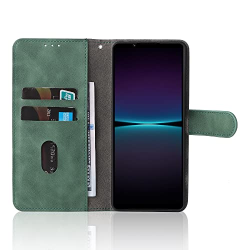 GOGME Leather Folio Cover per Sony Xperia 1 IV Cover, PU + TPU Leather Wallet Case, Premium Filp Cover Custodia in Pelle Portafoglio con Funzione Stand, Verde