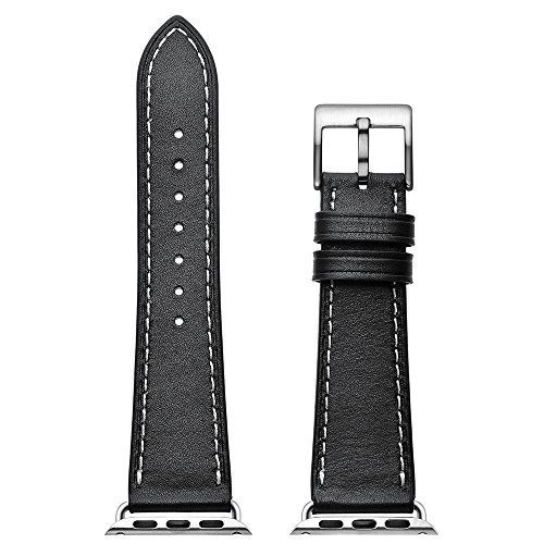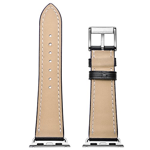 GOGODOG Apple Watch Bande Quick Release Classic Silver Fibbia ad ardiglione Braccialetto Morbido Sports Vera Pelle Manuale Pelle Bovina Cinturino per Orologio Apple Watch 38mm / 42mm (38mm, Marrone)