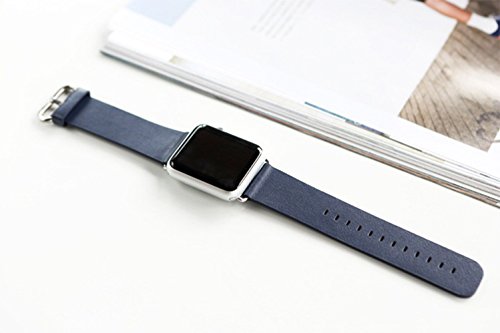 GOGODOG Apple Watch Bands Quick Release Classic Silver Fibbia ad ardiglione Braccialetto Morbido Sports Fashion Good Taste Top Level Vera Pelle Manuale Pelle Bovina Custom Made Cinturino (38mm, Blu)
