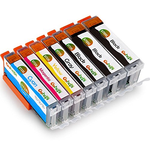 Gohepi Compatibile per Cartucce Canon PGI-570XL CLI-571XL (Compreso il Grigio),2 Pigmento Nero/Nero/Grigio/Ciano/Magenta/Giallo 7-Pacco per Canon PIXMA MG7700 MG7750 MG7751 MG7752 TS8050 TS8051 TS9050
