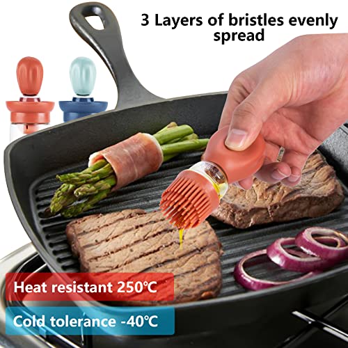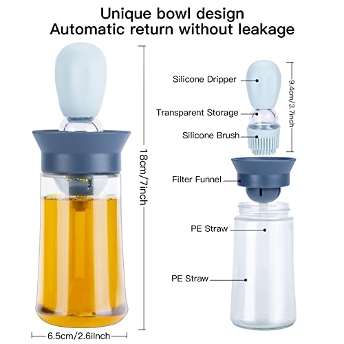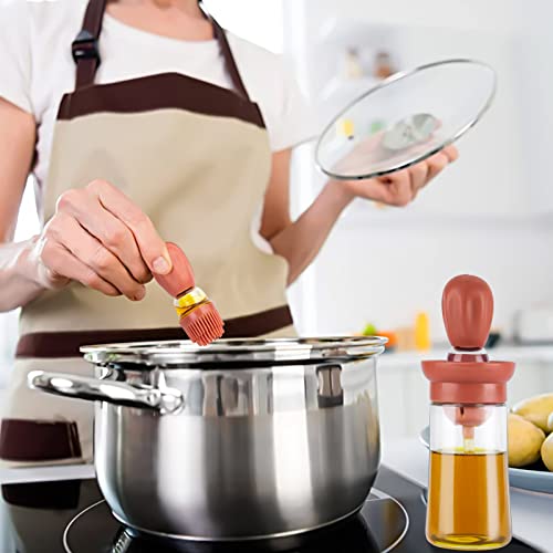 GOHHME Bottiglia di olio con pennello in silicone 2 Pezzi 180ml 2 in 1 dispenser olio Pratica Bottiglia di Olio con Pennello per insalate di verdure Piatti di pasta Arrosti e cotture