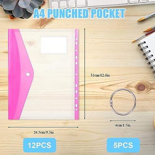 Organizza con facilità: le nostre tasche perforate in plastica A4 sono progettate per aiutarti a mantenere i tuoi documenti e file ordinatamente organizzati. Confezione da 12 portafogli in plastica A4 con bottoni, viene fornito con 5 anelli raccoglitori, è possibile utilizzarlo sulle nostre tasche perforate o altri prodotti perforati.