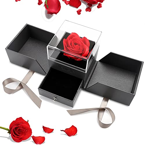 ღ Rosa Eterna Regalo: La rosa è un simbolo di amore eterno, questa rosa eterna può essere il simbolo del tuo amore per sempre, della tua famiglia di armonia e della tua leale amicizia.La gente lo chiama "fiore mai appassito" e "fiore eterno". Conservazione completa delle caratteristiche dei fiori, simbolo dell'amore per sempre. Nota: pendente non incluso!