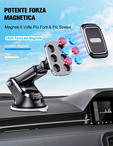 Goigrn Porta Cellulare da Auto, Supporto Cellulare Auto Magnetico a 360° con Ventosa e Braccio Estensibile su Cruscotto Parabrezza, Porta Telefono Auto Compatibile con iPhone, Samsung, Huawei, Ecc.