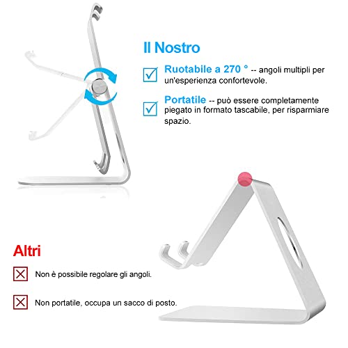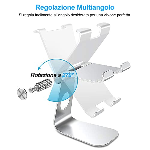 Goigrn Supporto Tablet, Porta Cellulare da Tavolo, 270° Ruotabile Dock Ricarica Desktop Compatibile con iPad Pro 9.7/10.2/10.5/12.9, iPad Air, iPad Mini, Samsung Tabs, Live Stream (4-13")