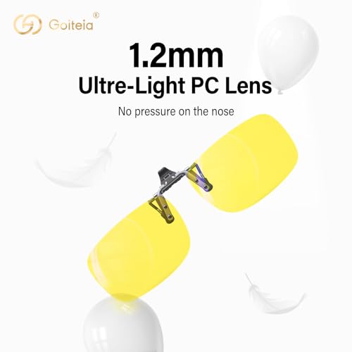 Occhiali da sole gialli con clip per computer: gli occhiali da computer gialli Goiteia sono perfetti per uso generale del computer, tablet, smartphone e giochi casual. La tinta giallo chiaro è progettata per consentire a designer e artisti visivi che richiedono un colore reale.