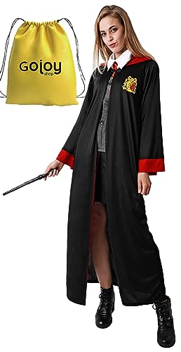Gojoy Shop - Costume da studente di magia per donne e ragazze Halloween carnevali(contiene:Tunica con cappuccio, collo con cravatta, gilet, gonna, bacchetta magica e zaino di corde.) (3-4 anni)