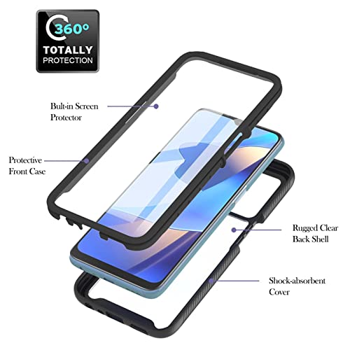GOKEN Cover per Oppo A16 / Oppo A54s / Oppo A16s, 360° Custodia con Pellicola Protettiva Integrata Rugged Case, TPU Silicone Bumper + PC Retro Rigido, Nero