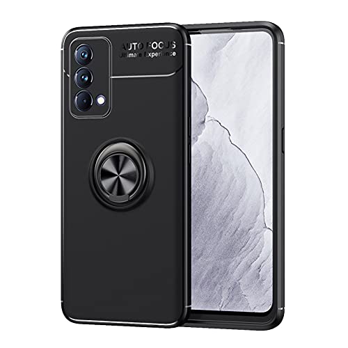 GOKEN Cover per realme GT Master Edition, TPU Silicone Custodia con 360° Girevole Anello, Soft Rubber Protettiva Case, Antiurto Antiscivolo Protezione Shell, Nero+Nero