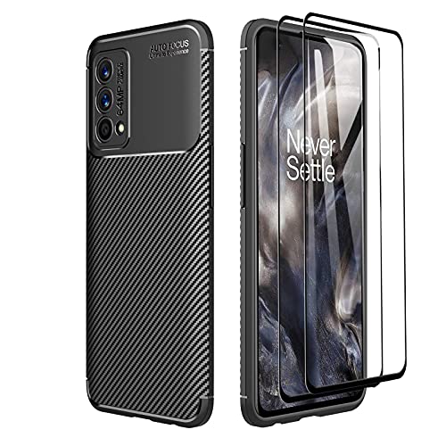 GOKEN Cover per realme GT Master Edition + 2 Vetro Temperato, Silicone TPU Fibra di Carbonio Custodia, Soft Rubber Protettiva Case, Antiurto Antiscivolo Protezione Shell, Nero