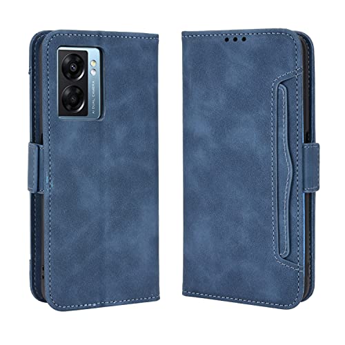 GOKEN Cover per Realme Narzo 50 5G, Custodia Folio in PU Pelle Flip Wallet Libro Case con Portafoglio, TPU Silicone Magnetica Cover con Supporto di Stand/Carte Slot (Blu)
