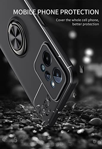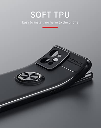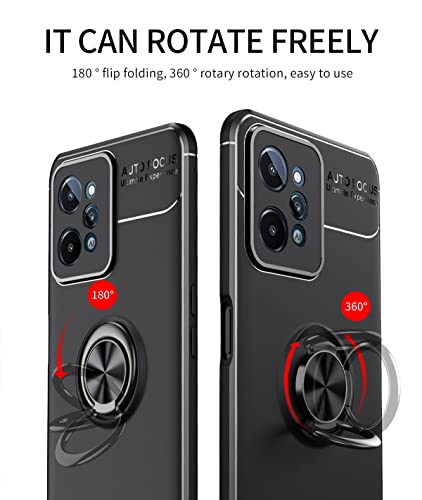 GOKEN Cover per Realme C31 4G, TPU Silicone Custodia con 360° Girevole Anello, Soft Rubber Protettiva Case, Antiurto Antiscivolo Protezione Shell, Nero+Nero