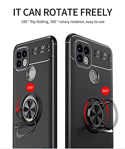 GOKEN Cover per Realme C21, TPU Silicone Custodia con 360° Girevole Anello, Soft Rubber Protettiva Case, Antiurto Antiscivolo Protezione Shell, Blu+Nero
