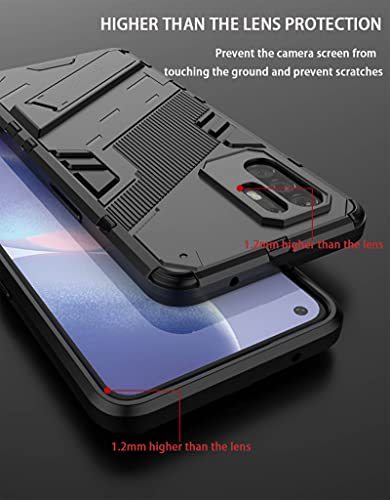 GOKEN Cover per Oppo A94 5G / Reno 5Z (Reno5 Z) + 2 Vetro Temperato, Silicone TPU/PC Dual Layer Hybrid Armor Custodia con Supporto Verticale e Orizzontale,Antiurto Protezione Shell, Nero