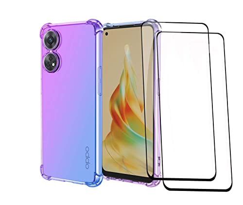 GOKEN Cover per Oppo Reno 8 T (Reno8 T) + 2 Vetro Temperato, Silicone TPU a Gradiente Colori Custodia, Soft Rubber Protettiva Case, Antiurto Antiscivolo Protezione Shell, Viola/Blu