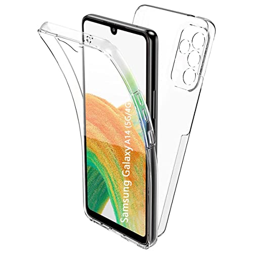 GOKEN Cover per Samsung Galaxy A14 (5G/4G), Trasparente 360 Gradi Custodia con Pellicola Protettiva Integrata Rugged Case, TPU Silicone Bumper + PC Retro Rigido, Trasparente