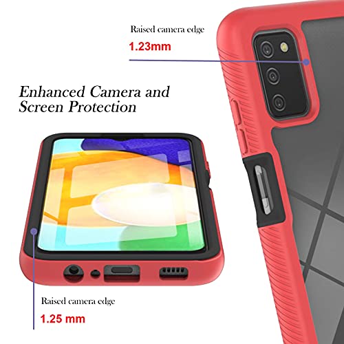 GOKEN Cover per Samsung Galaxy A03s, 360° Custodia con Pellicola Protettiva Integrata Rugged Case, TPU Silicone Bumper + PC Retro Rigido, Rosso