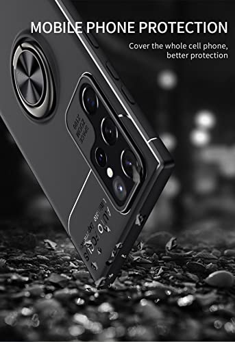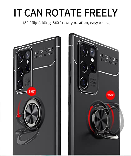 GOKEN Cover per Samsung Galaxy S22 Ultra 5G, TPU Silicone Custodia con 360° Girevole Anello, Soft Rubber Protettiva Case, Antiurto Antiscivolo Protezione Shell, Nero+Nero