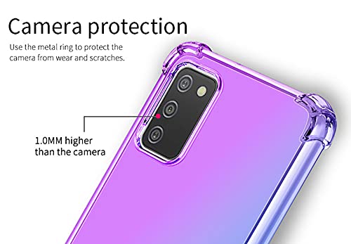 GOKEN Cover per Samsung Galaxy A03s + 2 Vetro Temperato, Silicone TPU a Gradiente Colori Custodia, Soft Rubber Protettiva Case, Antiurto Antiscivolo Protezione Shell, Viola/Blu