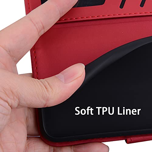 GOKEN Cover per Xiaomi Poco M4 PRO 5G, Custodia Flip PU Pelle TPU Portafoglio Custodie con Stand & Carte Slot & Modello Carino, Chiusura Magnetica Telefono Case, Rosso