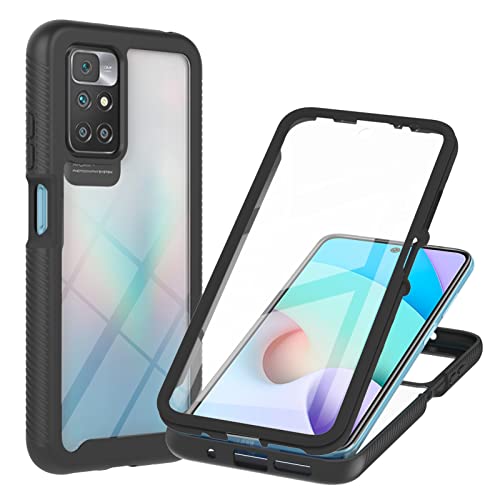 GOKEN Cover per Xiaomi Redmi 10 4G, 360° Custodia con Pellicola Protettiva Integrata Rugged Case, TPU Silicone Bumper + PC Retro Rigido, Nero