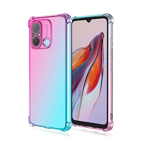 GOKEN Cover per Xiaomi Redmi 12C / Redmi 11A, Silicone TPU a Gradiente Colori Custodia, Soft Rubber Protettiva Case, Antiurto Antiscivolo Protezione Shell, Rosa/Verde