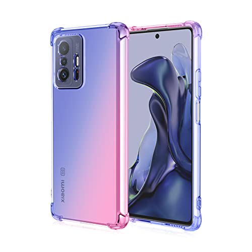 GOKEN Cover per Xiaomi Mi 11T PRO 5G / Xiaomi Mi 11T 5G, Silicone TPU a Gradiente Colori Custodia, Soft Rubber Protettiva Case, Antiurto Antiscivolo Protezione Shell, Blu/Rosa