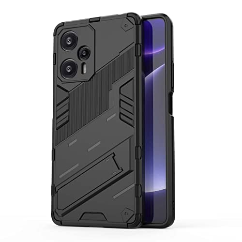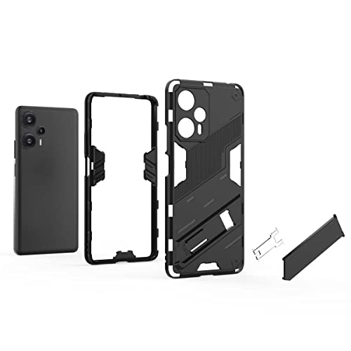 GOKEN Cover per Xiaomi Poco F5, Silicone TPU/PC Dual Layer Hybrid Armor Custodia con Supporto Verticale e Orizzontale,Antiurto Protezione Shell, Nero