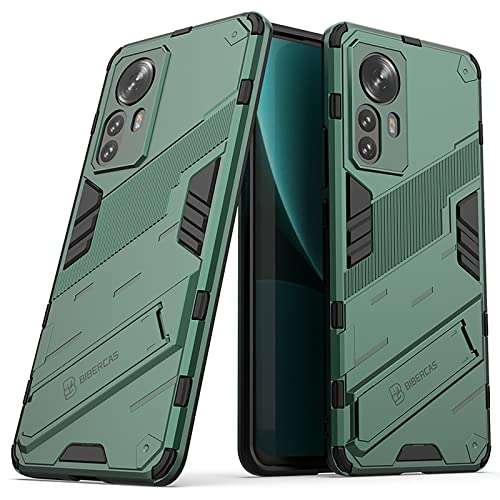 GOKEN Cover per Xiaomi 12 PRO, Silicone TPU/PC Dual Layer Hybrid Armor Custodia con Supporto Verticale e Orizzontale,Antiurto Protezione Shell, Verde