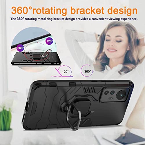 GOKEN Cover per Xiaomi Mi 12X / Xiaomi Mi 12, TPU/PC Dual Layer Hybrid Armor Custodia con Supporto Magnetico Auto, Silicone Cover con 360° Girevole Anello,Antiurto Protezione Shell, Nero
