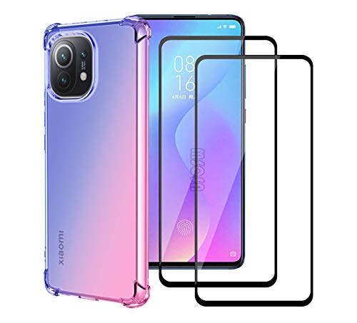 GOKEN Cover per Xiaomi Mi 11 Lite 5G NE | Mi 11 Lite 5G | Mi 11 Lite + 2 Vetro Temperato, Silicone TPU a Gradiente Colori Custodia, Soft Rubber Protettiva Case, Antiurto Antiscivolo Shell, Blu/Rosa