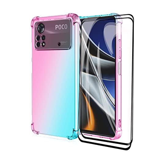 GOKEN Cover per Xiaomi Poco M4 PRO 4G + 2 Vetro Temperato, Silicone TPU a Gradiente Colori Custodia, Soft Rubber Protettiva Case, Antiurto Antiscivolo Protezione Shell, Rosa/Verde