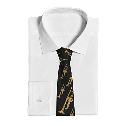 Gokruati Cravatta da Uomo Cravatta Classica Vintage Cravatta Sottile Elegante Cravatta Formale per Matrimonio Banchetto Cena Divertente Tromba Musicale Strumento a Fiato Oro Nero