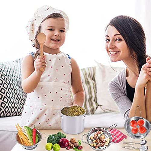 GOLCUGYJH Set di utensili da cucina in acciaio inossidabile, mini accessori da cucina, pentole e padelle da gioco confezionati in un sacchetto di stoffa dorato per bambini e bambini