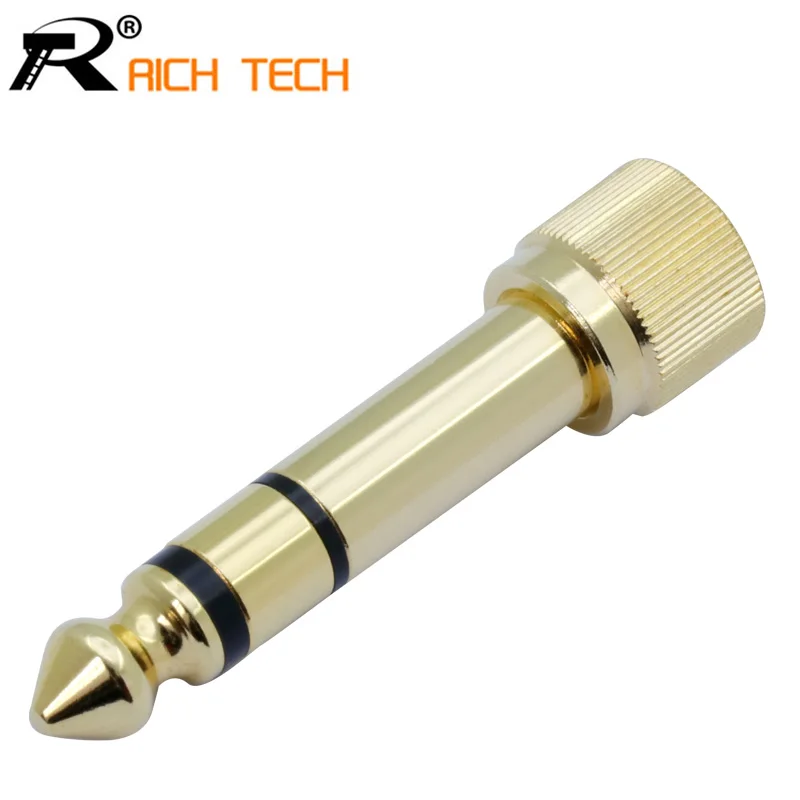 1pc Gold-plated adapter Jack 6.35mm 3pole stereo male plug with inside screw to 3.5mm jack stereo female socket converter